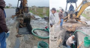Atiende COMAPA fuga de agua residual en la Carretera Reynosa–Río Bravo