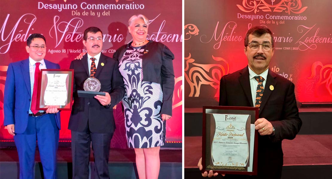 La ceremonia celebrada en la capital del país fue encabezada por el secretario de Agricultura y Desarrollo Rural del Gobierno de México, Julio Berdegué Sacristán, y la presidenta de la FedMVZ, Laura Arvizu Tovar, quienes resaltaron la importancia de reconocer la labor de los médicos veterinarios zootecnistas en la salud animal, la seguridad alimentaria y el bienestar social, destacando la contribución de líderes como el rector Dámaso Anaya para el fortalecimiento de este sector.
