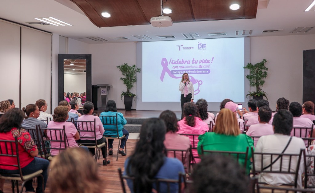 Ciudad Victoria, Tamaulipas (18-Septiembre-2025).- Con el firme propósito de respaldar a las mujeres que enfrentan o han enfrentado la lucha contra el cáncer de mama, el Sistema para el Desarrollo Integral de la Familia de Tamaulipas, que preside la doctora María de Villarreal, mantiene abiertas las campañas permanentes de prótesis de mama, turbantes y reconstrucción mamaria postmastectomía.