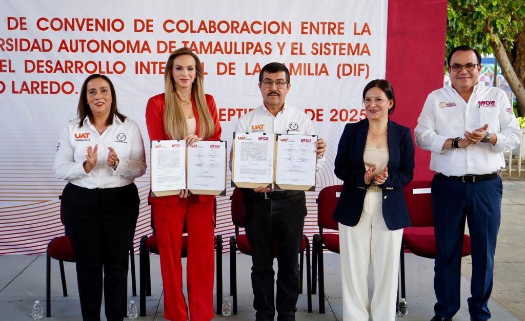 El acuerdo celebrado con la presidenta del DIF Nuevo Laredo, Claudette Canturosas Villarreal, permitirá que las y los estudiantes de Enfermería realicen sus prácticas profesionales en estancias infantiles, centros de atención comunitaria, jornadas y programas de salud que promueve el organismo lo que contribuirá a fortalecer su preparación académica y humana.
