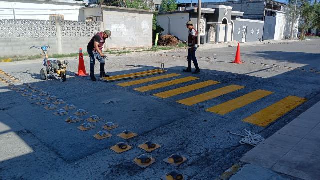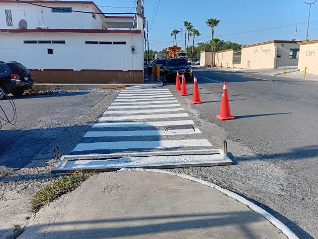 Pintado de cruce peatonales conocidos como «cebra»: Frente al fraccionamiento Villa Florida, para mejorar la visibilidad y seguridad de los peatones.
