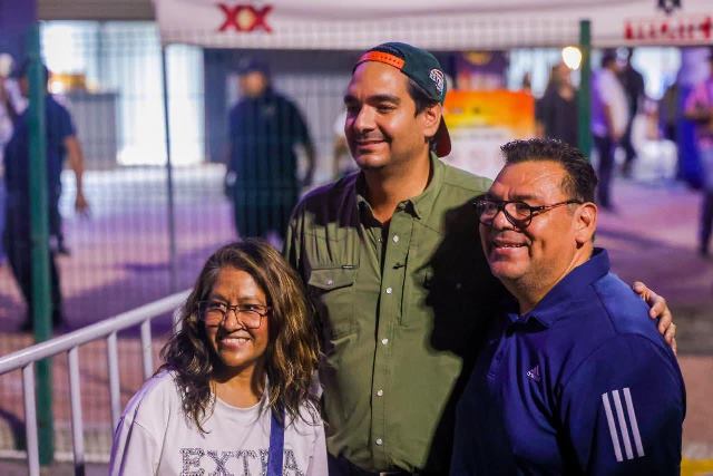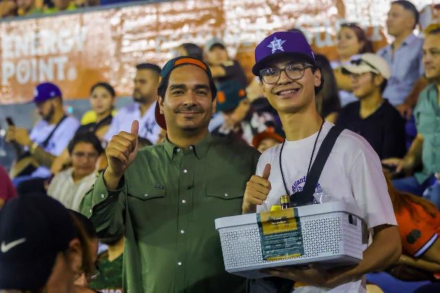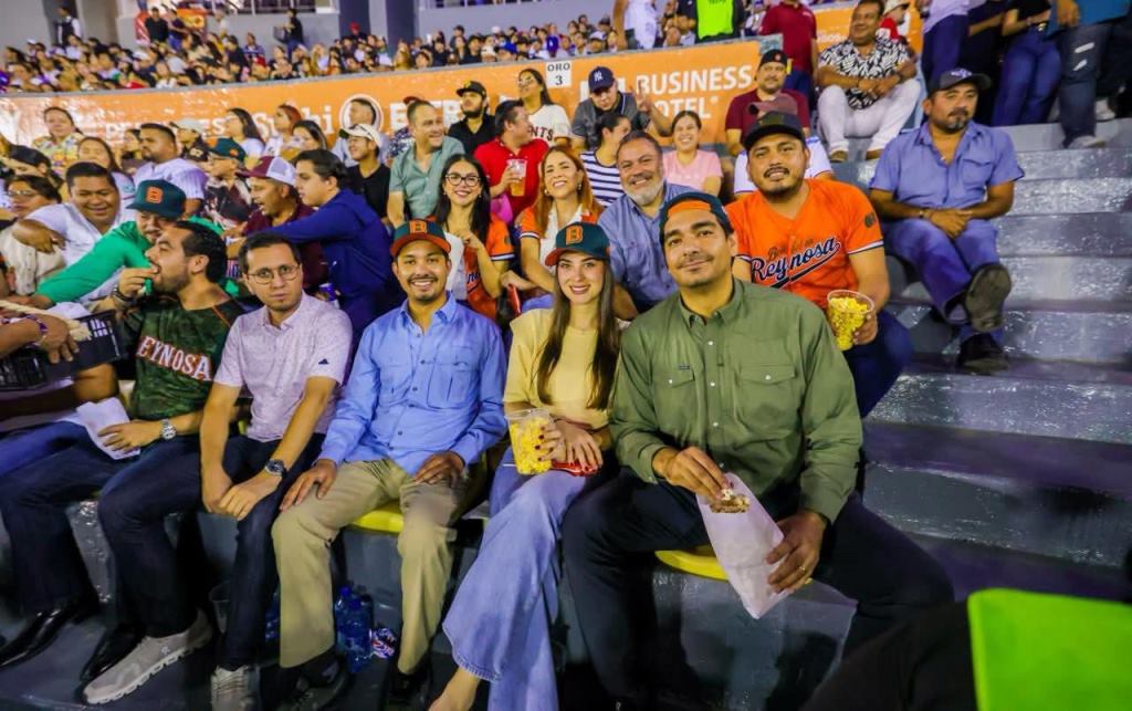 Reynosa, Tam (4-Octubre-2025).- Reynosa vivió una gran tardeada beisbolera; el Alcalde Carlos Peña Ortiz, acompañado por su esposa Alejandra Yelitza Garza, convivió con la afición en el majestuoso y renovado parque Adolfo López Mateos, el del campeonato nacional «AAA» hace 56 años, fecha deportiva histórica de los Broncos, un mes de agosto, después del viaje de Apolo 11.