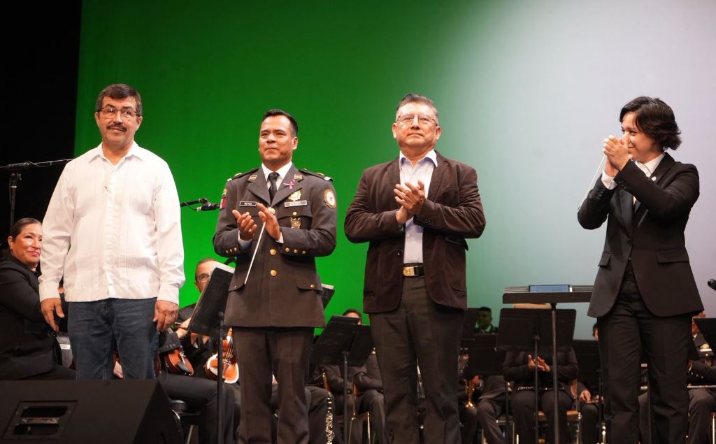 Bajo la dirección del maestro Remigio Reyes González, la Orquesta Sinfónica de Alientos brindó un programa lleno de energía e identidad nacional, que incluyó arreglos sinfónicos de música mexicana. Posteriormente, la Banda de Guerra de la Coordinación Territorial Región Golfo de la Guardia Nacional se presentó con un despliegue de fuerza y precisión.