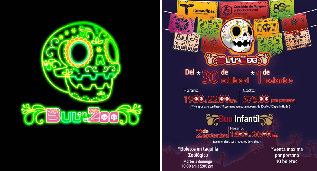 Ciudad Victoria, Tamaulipas (6-Octubre-2025).- La Comisión de Parques y Biodiversidad de Tamaulipas, invita a las familias a vivir la magia del Día de Muertos con el espectacular “Buu en el Zoo”, que tras el éxito de ediciones pasadas, regresa con mayor emoción en cuatro fechas, para llenarte de sorpresas y tradiciones en un ambiente único.