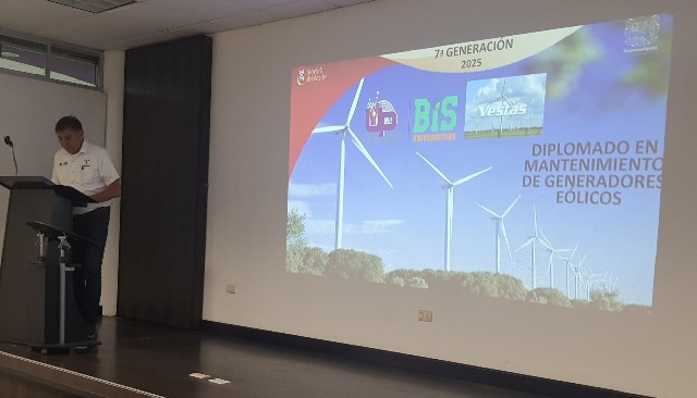 Mencionó que el diplomado se fortalece cada vez más gracias a las tecnologías de vanguardia y los avances requeridos por la industria eólica, que aporta la empresa Vestas al producir energías limpias y sustentables para el medio ambiente.
