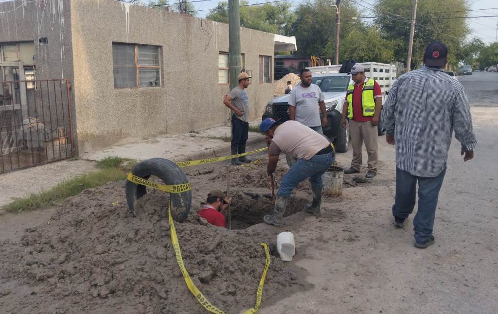 Reynosa, Tam (7-Octubre-2025).- Atendiendo las indicaciones del Alcalde, Carlos Peña Ortiz, la Comisión Municipal de Agua Potable y Alcantarillado de Reynosa realiza maniobras de reparación de una fuga de agua potable sobre la calle Pino Suárez, entre Allende y Zaragoza, en la Zona Centro, con el objetivo de evitar el desperdicio de este importante recurso y mejorar la distribución del servicio en el sector.