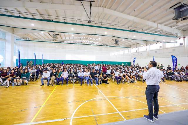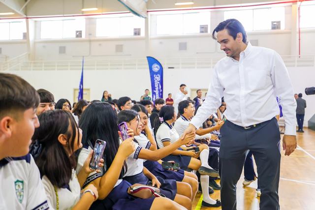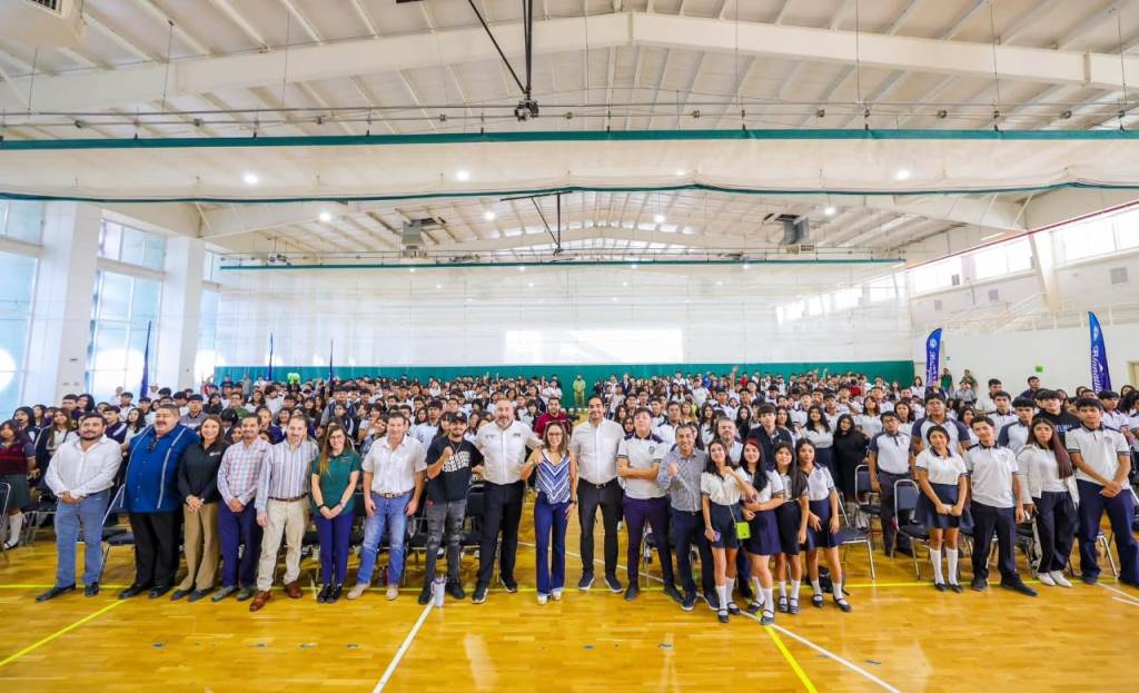 Reynosa, Tam (7-Octubre-2025).- Más de Mil jóvenes reynosenses se reunieron con el Presidente Carlos Peña Ortiz en el Polideportivo Reynosa, donde presentó a la boxeadora Jackie Nava, «La Princesa Azteca», quien impartió la plática motivacional El Poder de Tu Miedo.