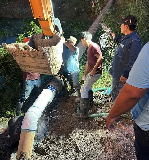 Reynosa, Tam (9-Octubre-2025).- Por instrucciones del Presidente Municipal, Carlos Peña Ortiz, la Comisión Municipal de Agua Potable y Alcantarillado de Reynosa llevó a cabo maniobras de reparación de una fuga de agua potable sobre Libramiento Oriente, en la colonia Ampliación Delicias, la cual afectaba el suministro en el sector.