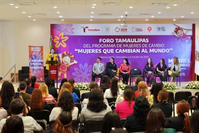 Nuevo Laredo, Tam (9-Octubre-2025).- El Gobierno Municipal de Nuevo Laredo, encabezado por la presidenta Carmen Lilia Canturosas Villarreal, reafirmó su compromiso con el fortalecimiento del liderazgo y emprendimiento femenino a través del foro “Mujeres que Cambian al Mundo: Negocios con Impacto”, enmarcado dentro de la iniciativa “Mujeres de Cambio Edición Tamaulipas”.