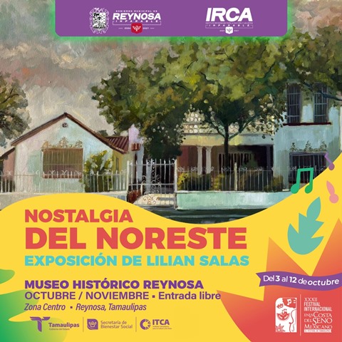 Reynosa, Tam (10-Octubre-2025).- Siguiendo las instrucciones del Alcalde Carlos Peña Ortiz, el Instituto Reynosense para la Cultura y las Artes invita a visitar la exposición Nostalgia del Noreste, de la artista Lilian Salas.