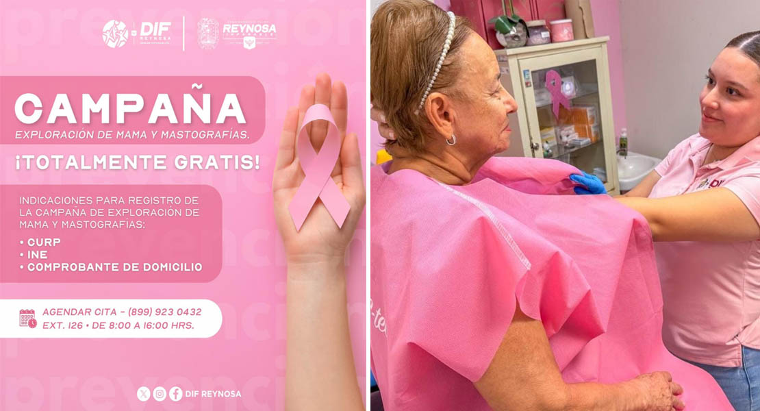 Reynosa, Tam (13-Octubre-2025).- A fin de apoyar a más mujeres en la lucha contra el cáncer de mama, el Sistema DIF-Reynosa que preside Carlos Luis Peña Garza, amplía la Campaña de Exploración de Mama y Mastografías gratuitas hasta el mes de diciembre, con el propósito de continuar promoviendo la prevención y detección oportuna del cáncer de mama entre las mujeres de nuestra ciudad.