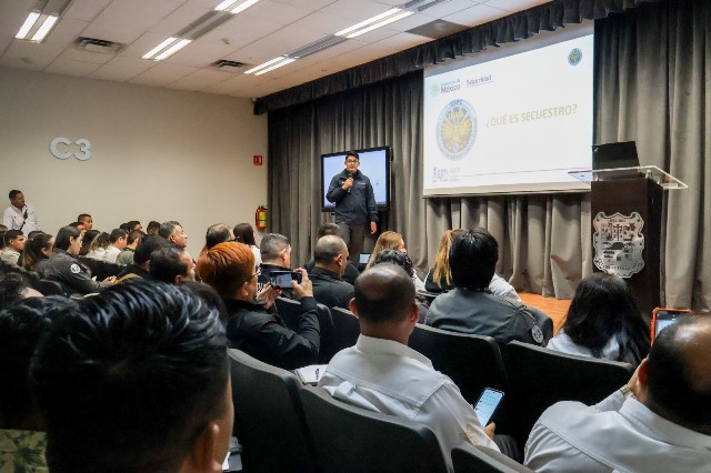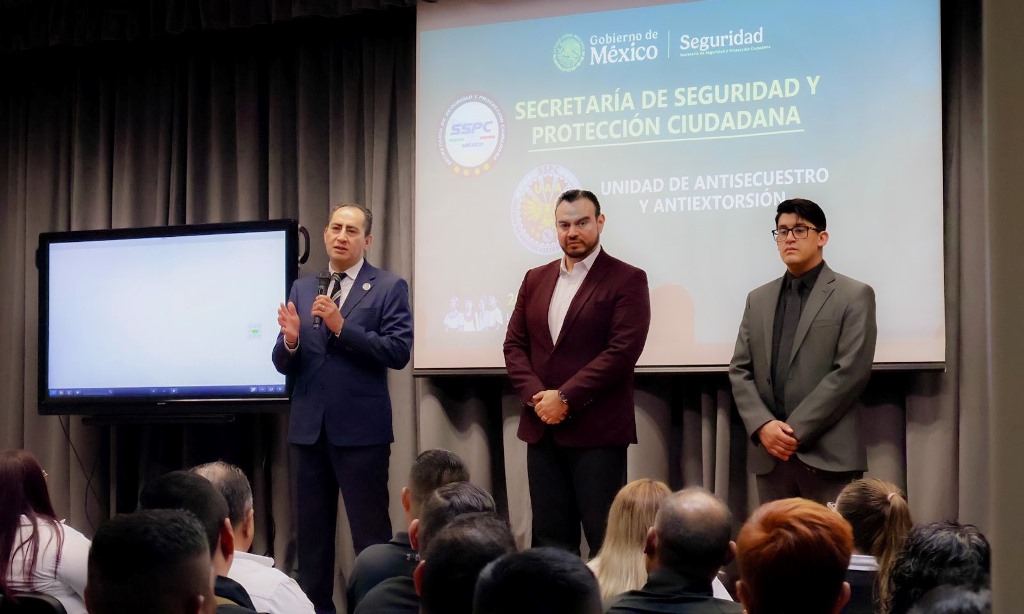 La capacitación es impartida por el oficial Miguel Ángel Alarcón Hernández, adscrito a la Unidad de Antisecuestro y Antiextorsión de la Secretaría de Seguridad y Protección Ciudadana (SSPC) y el agente investigador Carlos Roberto Medina Palma, quienes compartieron conocimientos especializados para fortalecer la capacidad operativa identificando las diversas modalidades de extorsión y de respuesta ante situaciones de crisis generadas por el delito de extorsión.