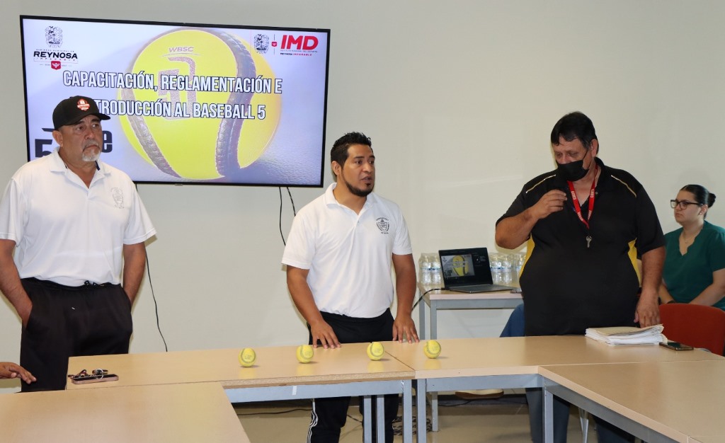 Reynosa, Tam (15-Octubre-2025).- Con el respaldo del Alcalde Carlos Peña Ortiz, se llevó a cabo con gran éxito el curso de capacitación teórico y práctico de Béisbol 5 dirigido a la Supervisión de Educación Física número 9, como parte de la introducción de este nuevo deporte dentro del sistema de educación escolar.