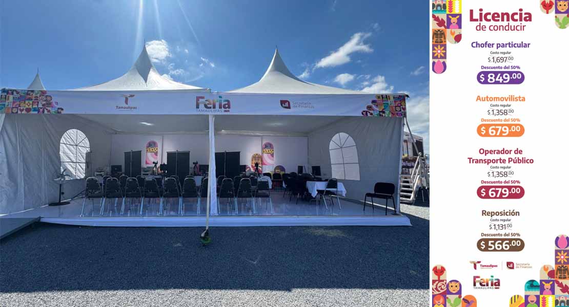 Estos descuentos estarán disponibles en el módulo de la Secretaría de Finanzas, instalado dentro de la Feria Tamaulipas 2025, con un horario de atención de lunes a domingo, de 5:00 p.m. a 9:00 p.m.