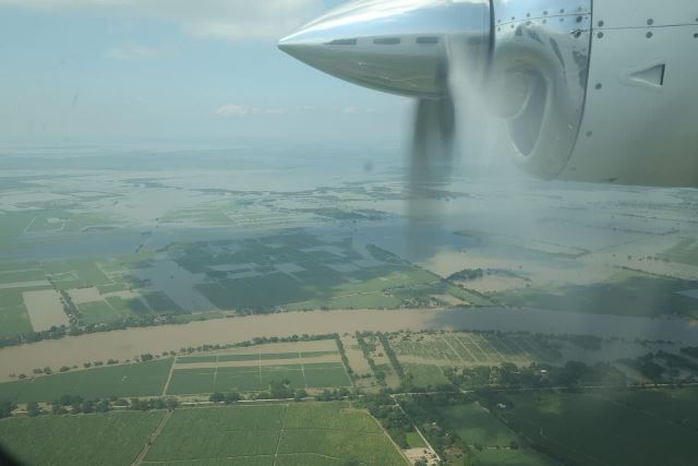 La tarde de este viernes, a bordo del avión «Tláloc» y acompañado por Raúl Quiroga Álvarez, secretario de Recursos Hidráulicos, el ejecutivo tamaulipeco recorrió las márgenes del Pánuco, hasta el municipio de Tamuín, San Luis Potosí, en donde constató las afectaciones a diversas comunidades rurales a causa del desbordamiento del río.