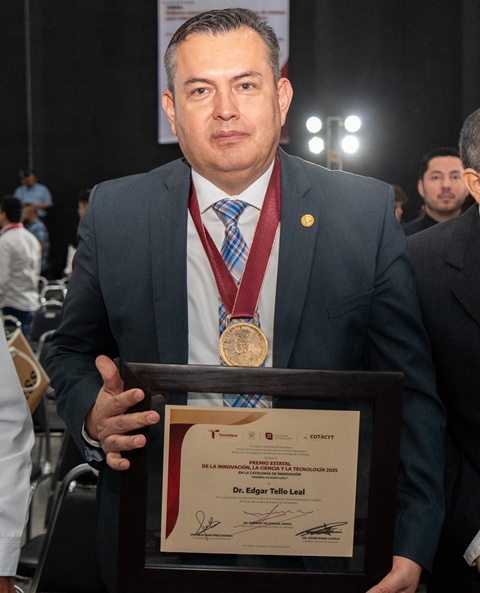 Ciudad Victoria, Tam (18-Octubre-2025).– El investigador de la Universidad Autónoma de Tamaulipas (UAT), Edgar Tello Leal, recibió el Premio Estatal de la Innovación, la Ciencia y la Tecnología 2025, en la categoría Innovación “Ramiro Iglesias Leal”, en el marco del Certamen Estatal de Creatividad e Innovación Tecnológica-Expo Ciencias Tamaulipas 2025.