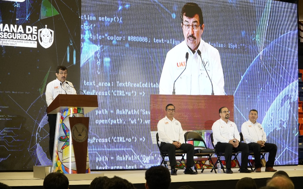 La Séptima Semana de Ciberseguridad de la UAT se desarrolla bajo el lema “La seguridad digital evoluciona con la I.A. ¿Estás listo?”. A lo largo de esta semana de actividades, que se extenderá hasta el 24 de octubre, se llevarán a cabo más de veinte conferencias y talleres especializados sobre temas como inteligencia artificial, ética digital, ciberdefensa, protección de datos, ransomware y neuroderechos, impartidos por especialistas de organizaciones como Microsoft, Huawei, Lenovo, Check Point, entre otras.
