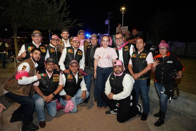 Nuevo Laredo, Tam (23-Octubre-2025).- En el marco del Mes de la Lucha contra el Cáncer de Mama, el Gobierno Municipal, el Sistema DIF, el Instituto Municipal de la Mujer (INMUJER) y cientos de motociclistas, se unieron esfuerzos para llevar a cabo la “Rodada Rosa”, un emotivo evento que promueve la prevención, la detección temprana y la concientización sobre esta enfermedad que afecta a miles de mujeres cada año.Cientos de motociclistas, junto a la presidenta municipal Carmen Lilia Canturosas Villarreal, Cynthia Canturosas Villarreal, presidenta del Consejo Consultivo del INMUJER; síndicos, regidores y mujeres sobrevivientes de cáncer hicieron rugir los motores de sus motocicletas como señal de solidaridad con quienes luchan contra esta enfermedad.