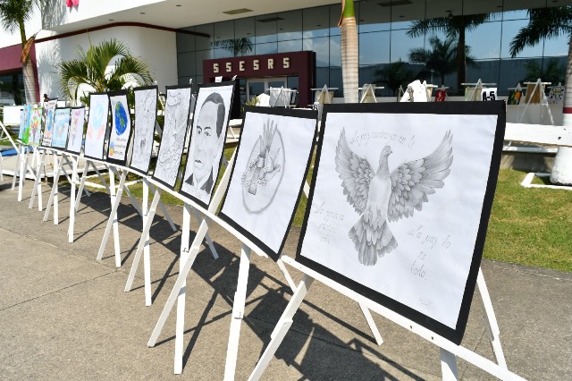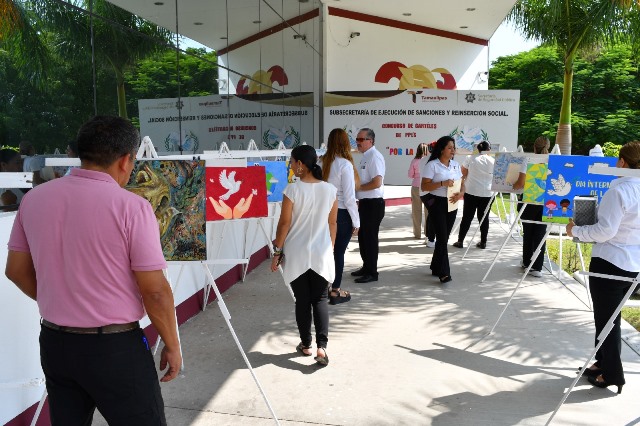 La exposición de los trabajos se realiza en la explanada frente al edificio del Centro de Ejecución de Sanciones (CEDES) del Complejo de Seguridad Pública en Ciudad Victoria, donde se exhiben los carteles elaborados con distintas técnicas como lápiz, acuarela y pintura sobre lienzo.