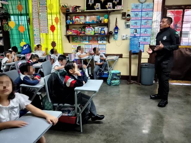 Los elementos de la Guardia Estatal promovieron la reflexión sobre el respeto y la empatía como base de la convivencia escolar, además de responder preguntas y generar dinámicas con los grupos de primero a tercer grado.
