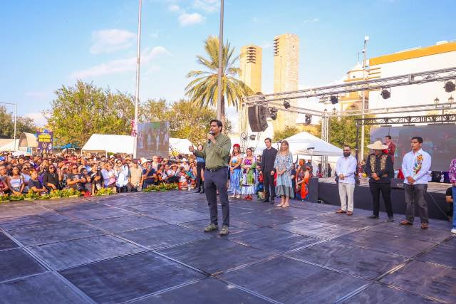 Reynosa, Tam (25-Octubre-2025).- El Presidente Municipal Carlos Peña Ortiz y la Senadora de la República, Maki Esther Ortiz Domínguez, invitados a la fiesta de cultura popular y comunitaria más importante del estado de Tamaulipas «Xantolo Reynosa 2025»; acompañaron a Brandon Lara, Subdirector del INPI, Instituto de Pueblos Indígenas en la tradicional celebración llevada a cabo este sábado 25 de octubre, con la presencia de Ricardo Botello, Secretario Particular de la Secretaría General de Gobierno de Tamaulipas y más de 10,000 asistentes.