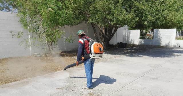 Reynosa, Tam (26-Octubre-2025).- El Gobierno de Reynosa que preside Carlos Peña Ortiz está realizando trabajo de saneamiento y mantenimiento en la escuela primaria Profesor Hermenegildo Castillo García, ubicada en el fraccionamiento Villas de La Joya, con la finalidad de evitar proliferación de fauna nociva y mejorar su aspecto.