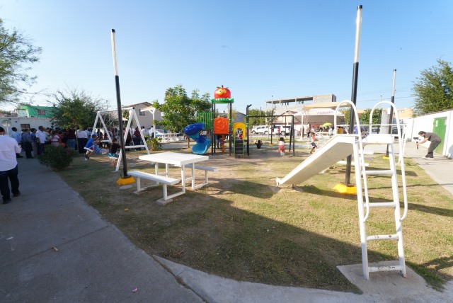Los trabajos incluyeron la instalación de juegos infantiles, bancas metálicas rehabilitadas, áreas verdes, cestos de basura, palapas, andadores, tomas de agua potable e instalaciones eléctricas.