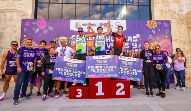 Reynosa, Tam (2-Noviembre-2025).- La Presidenta del Voluntariado DIF-Reynosa, Alejandra Yelitza Garza, en representación del Alcalde, felicitó a los competidores de la Carrera Huellas, Velas y Calaveras, que con total éxito fue celebrada este domingo con la participación de 600 corredores, que reunieron más de 10 toneladas de alimento para perros y gatos, contando con un importante donativo de Brandon Lara, Subdirector del Instituto Nacional de Pueblos Indígenas, quien participó en el evento.