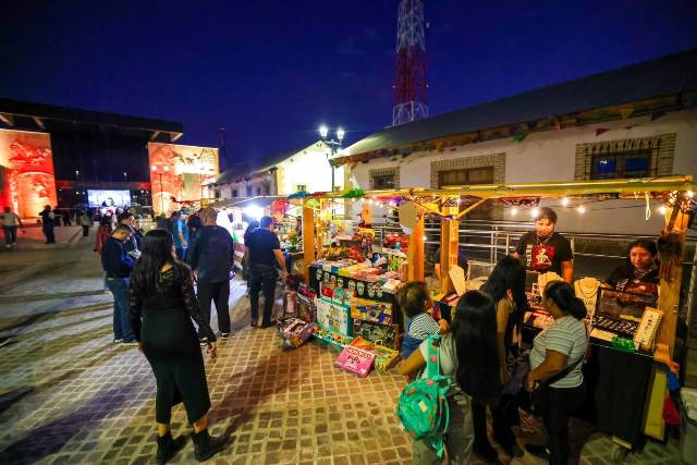 En la explanada, que recorrió el Alcalde, se contó con una estación de DJ, un escenario de canto, música y baile, puestos de exhibición y venta de jóvenes emprendedores y al interior de las antiguas oficinas del ferrocarril, otra estación de DJs con luces y sonido, una discoteca portátil con música moderna.