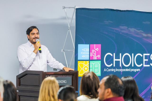 «Agradezco la invitación por tercer año consecutivo al programa Choices de Corning México, una gran iniciativa que impulsa el talento y liderazgo de las mujeres jóvenes en las áreas de Ciencia, Tecnología, Ingeniería y Matemáticas», dijo el Presidente Municipal.