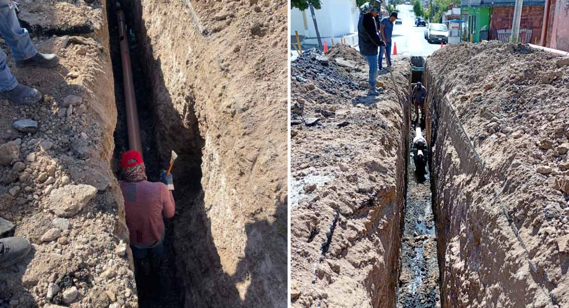 En estas acciones, el personal operativo del organismo realiza el reemplazo de tubería de PVC de 8 pulgadas de diámetro, con el propósito de mejorar el funcionamiento del sistema de drenaje sanitario y fortalecer la infraestructura hidráulica en este importante sector de la ciudad.