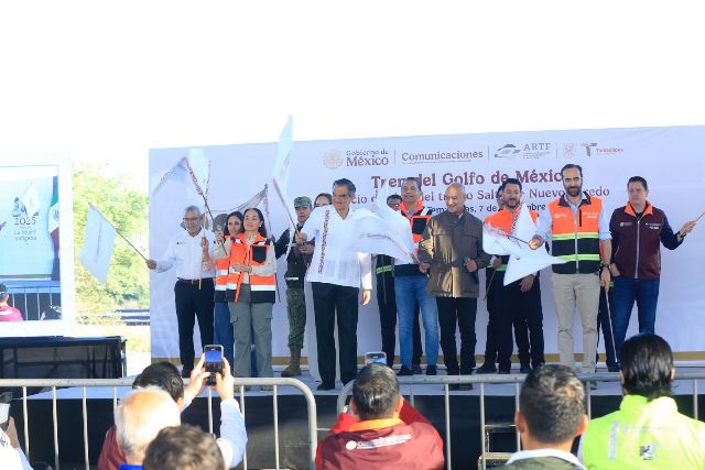 Por su parte, el secretario Jesús Esteva destacó que este día es muy significativo, ya que el inicio de la obra en Nuevo Laredo coincide con la celebración del Día del Ferrocarrilero, por lo que hizo un reconocimiento a todas y todos los ferrocarrileros del país.