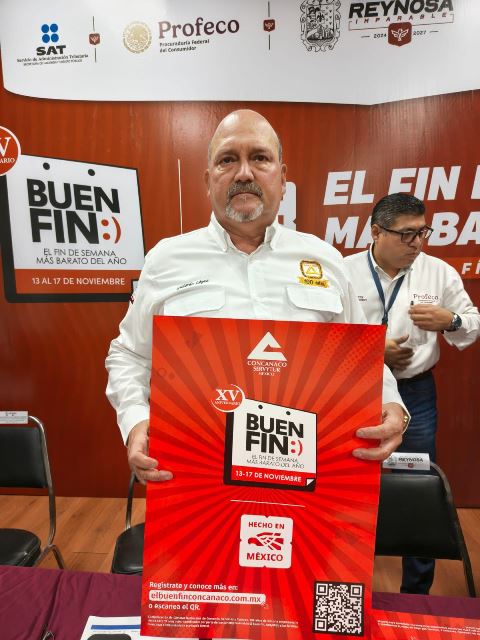 «Extendemos una cordial invitación a todos los comercios formales de Reynosa que aún no se han sumado a El Buen Fin 2025, para que realicen su registro a la brevedad. Pueden hacerlo a través de la plataforma oficial: www.elbuenfinconcanaco.com.mx o directamente en las oficinas de CANACO Reynosa.