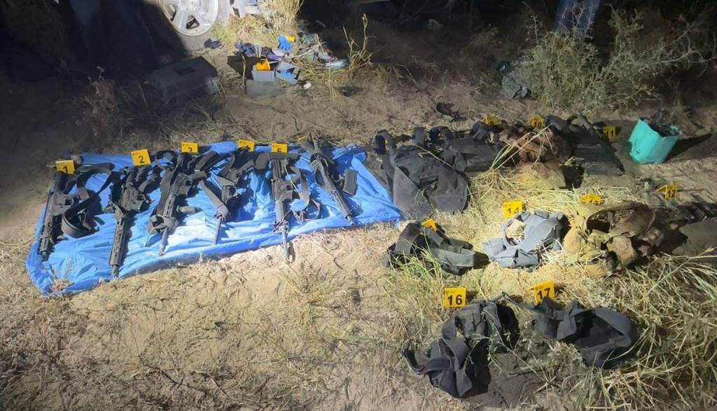 Reynosa, Tamaulipas (8-Noviembre-2025).– Personal de la Guardia Estatal repelió una agresión armada en la brecha TAM–Santo Domingo en Reynosa, en donde fueron aseguradas seis armas largas, equipo táctico, ponchallantas, un vehículo con reporte de robo en el extranjero, y cinco personas reducidas.