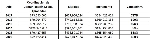 Aunque el Congreso solo le aprobó 636 millones para comunicación, el gasto se fue hasta las nubes, superando por más de 500% lo autorizado. En 2019, el colmo: se le aprobaron 69 millones, pero se quemaron 752 millones, sin contratos ni facturas que respalden en qué se fue ese dinero.
