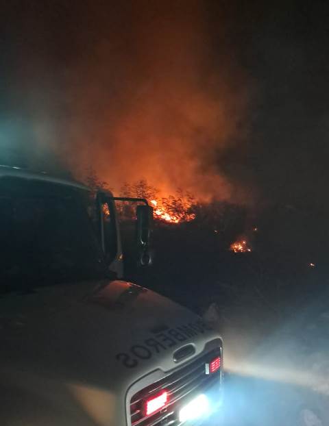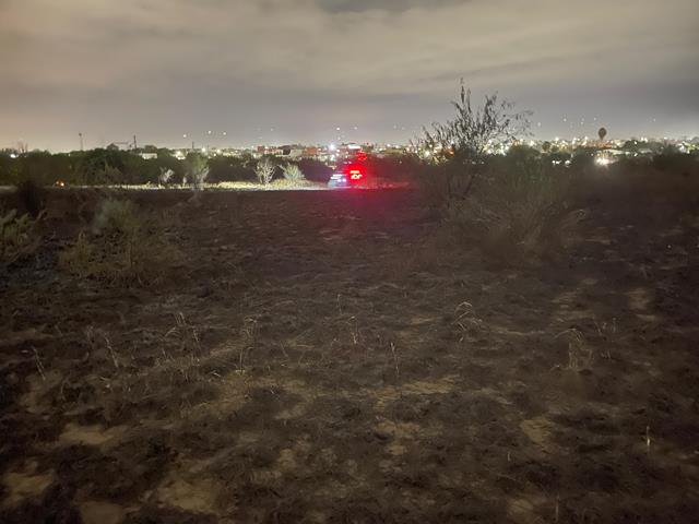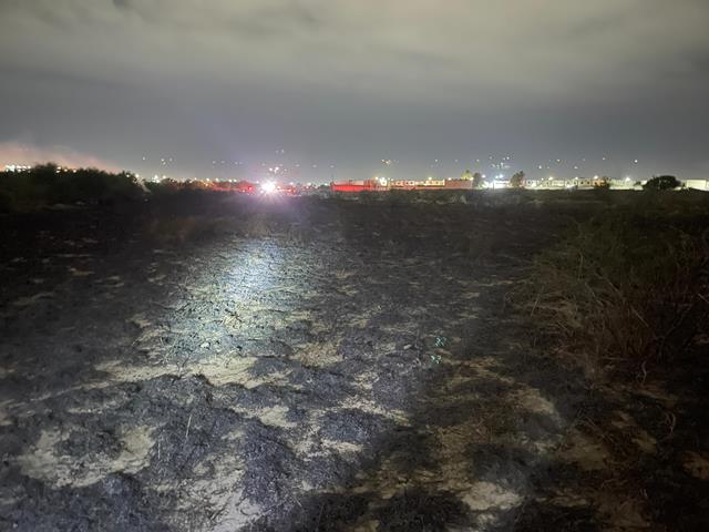 Reynosa, Tam (9-Noviembre-2025).- La Coordinación de Protección Civil y Bomberos del Gobierno de Reynosa acudió a la colonia La Cima, donde al recibir un reporte la noche de este domingo 9 de noviembre, combatió un incendio en cerca de tres hectáreas de pastizal y basura que amenazaba el área habitacional.