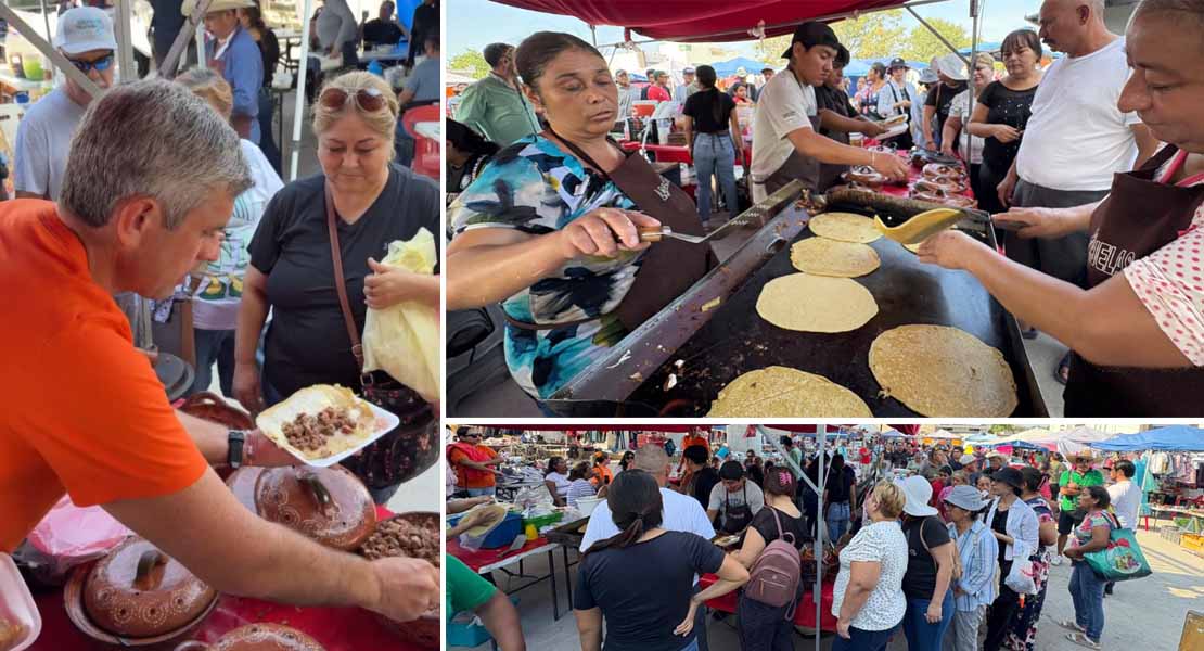 Las mujeres del tianguis también participaron preparando antojitos tradicionales, mostrando el espíritu solidario que caracteriza a Reynosa y sobretodo el apoyo al comercio local.