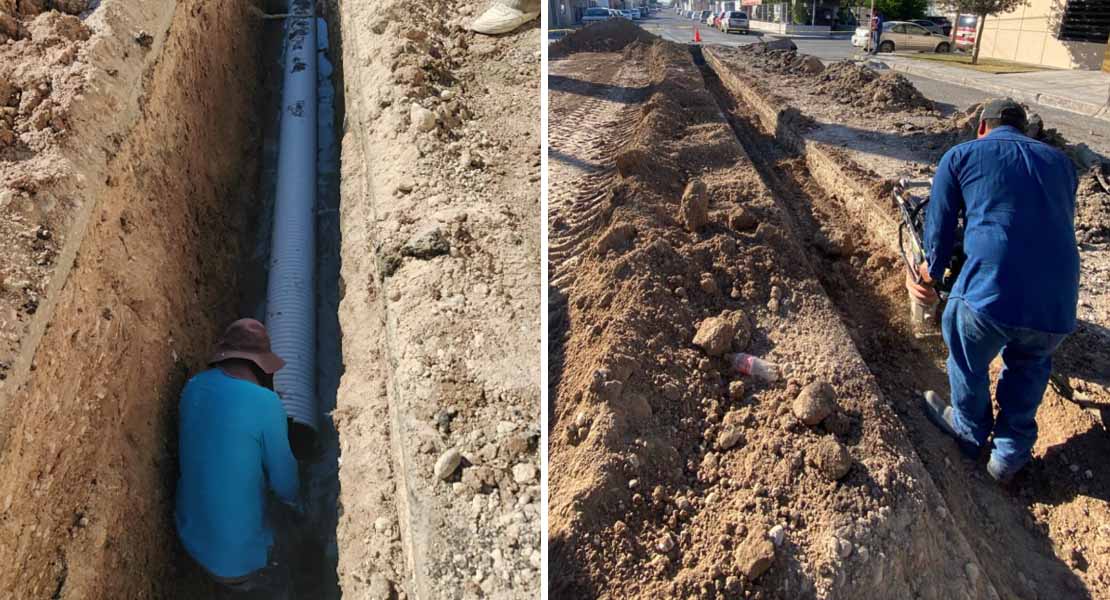 Reynosa, Tam (11-Noviembre-2025).- Por instrucciones del Alcalde, Carlos Peña Ortiz, la Comisión Municipal de Agua Potable y Alcantarillado de Reynosa realiza trabajos de reemplazo de tubería de PVC de 12 pulgadas de diámetro en la toma de descarga sobre la calle Dr. Plata, entre Dr. González y Avenida Rodolfo Garza Cantú, con el objetivo de mejorar el funcionamiento del sistema de drenaje sanitario en el sector y optimizar el servicio para las familias de la zona.