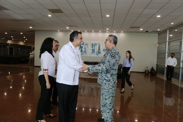 En la reunión también participaron: Miguel Rivas Hernández, comandante primera zona naval; Newton Manuel Chávez, comandante de la 48 zona militar, y Adolfo Amparán Hernández, coordinador estatal de la Guardia Nacional en Tamaulipas entre otras autoridades.