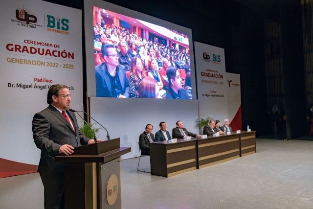 Ciudad Victoria, Tamaulipas (13-Noviembre-2025).- Poner al servicio de la sociedad sus conocimientos, capacidades y talentos desarrollados durante su formación profesional, fue el llamado que hizo Miguel Ángel Valdez García, secretario de Educación de Tamaulipas, a las y los graduados de las diferentes carreras que conforman la Generación 2022–2025 de la Universidad Politécnica de Victoria (UPV), de la cual fue padrino.