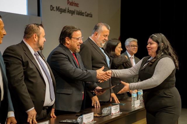 A nombre del gobernador Américo Villarreal Anaya, felicitó a las y los graduados por este logro académico y reiteró que es reflejo del trabajo, esfuerzo y compromiso que dedicaron a su educación universitaria hasta culminar.