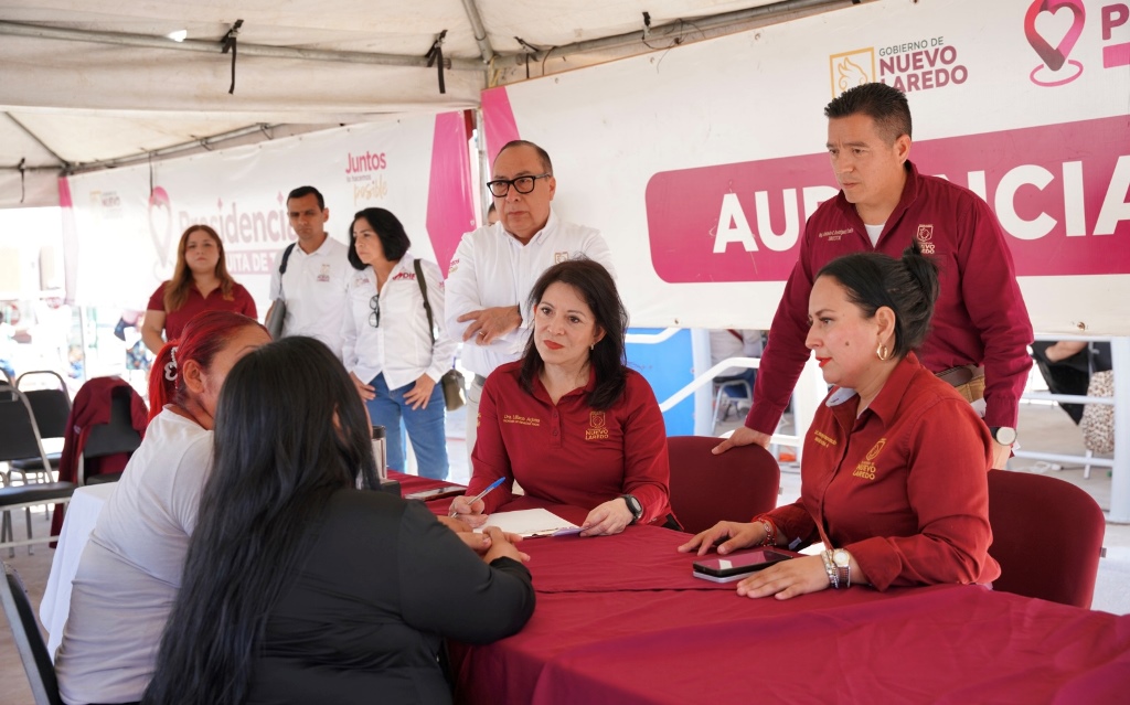 Nuevo Laredo, Tam (13-Noviembre-2025).- Con gran participación de vecinas y vecinos, el programa “Presidencia Cerquita de Ti” se llevó a cabo en la colonia Los Olivos, donde funcionarios del Gobierno Municipal atendieron personalmente a las familias que acudieron a recibir diversos apoyos y servicios municipales.