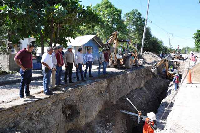El recorrido incluyó la inspección de la calle Vicente Guerrero, punto donde se concentran los esfuerzos para mejorar el sistema sanitario que da servicio a las familias de la zona.