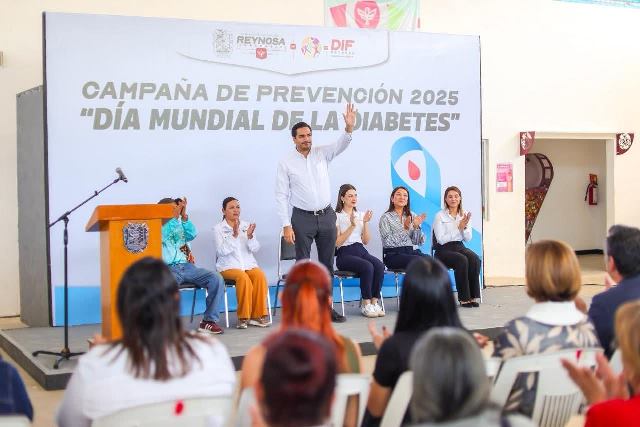 Reynosa, Tam (14-Noviembre-2025).- Al dar inicio a la Campaña de Prevención 2025 del Día Mundial de la Diabetes, el Presidente Carlos Peña Ortiz aseguró: «es un gusto verlos aquí en el DIF donde inicié como servidor público, con mucho orgullo porque a final de cuentas este es el corazón del Municipio donde se atiende a los grupos más vulnerables. En este Día Mundial de la Diabetes buscamos con nuestra política pública dar un contexto de prevención a este tipo de enfermedades».