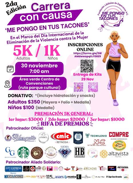 Reynosa, Tam (19-Noviembre-2025).- El Gobierno del Alcalde Carlos Peña Ortiz brinda su total respaldo para la realización de la Carrera 5K “Me Pongo En Tus Tacones”, que se llevará a cabo en el Parque Cultural Reynosa como parte de las actividades conmemorativas del Día Internacional de la Eliminación de la Violencia Contra la Mujer.