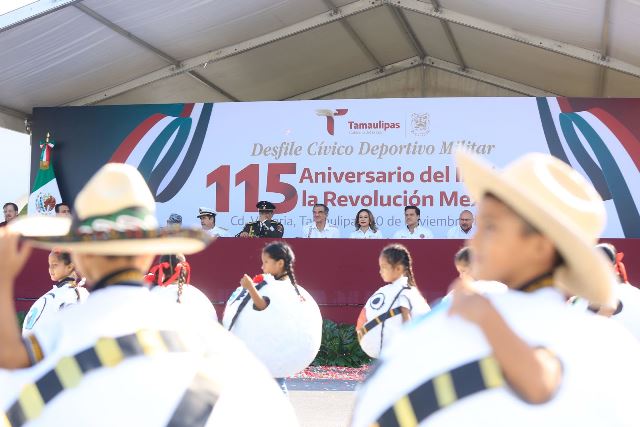 - Presidida por el gobernador Américo Villarreal, la fiesta cívica transcurre en paz, con la participación de más de 3,500 estudiantes, militares y elementos de seguridad