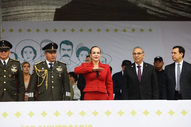 La alcaldesa Carmen Lilia Canturosas Villarreal encabezó esta mañana los actos cívicos y el tradicional Desfile Cívico Militar, acompañada por autoridades militares, educativas y cientos de familias que se dieron cita para rendir homenaje a los héroes de 1910.