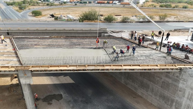 Actualmente, las cuadrillas especializadas trabajan en el vaciado de las losas del puente, una de las etapas finales antes de su conclusión estructural.