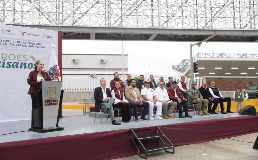 Nuevo Laredo, Tam (28-Noviembre-2025).- Con un mensaje de unidad y coordinación entre los diferentes niveles de gobierno, el gobernador de Tamaulipas, Américo Villarreal Anaya, y la alcaldesa de Nuevo Laredo, Carmen Lilia Canturosas Villarreal, encabezaron el Arranque Oficial del Operativo Especial de Invierno 2025 “Héroes Paisanos”, refrendando el compromiso conjunto de brindar seguridad, atención y un tránsito ordenado a los connacionales que ingresan al país durante la temporada decembrina.
