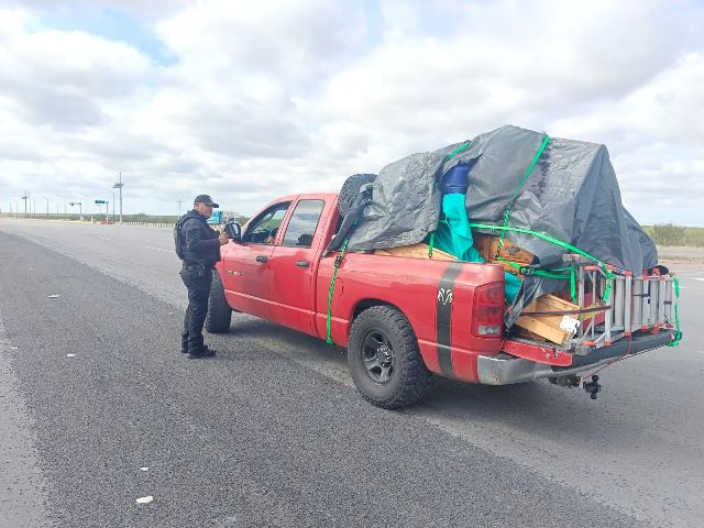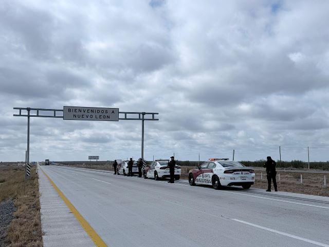 En Nuevo Laredo, los elementos reforzaron los recorridos de supervisión en la Carretera Federal 85, especialmente en el kilómetro 175 —límite con Nuevo León— y en la plaza de cobro ubicada más adelante. En este punto se brinda orientación directa a los paisanos, además de difundir los números de emergencia 911 y 089 para denuncias anónimas.